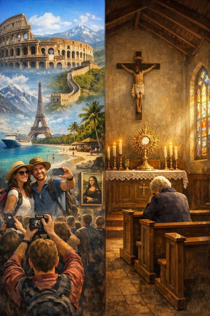 „Je smutné uvedomiť si, že hoci toľkí veria, že Ježiš je prítomný v Najsvätejšej sviatosti, tak zriedka Ho navštevujú. Ľudia cestujú cez oceány, aby videli starobylé zrúcaniny, obrazy, krajiny, celebrity a hory, ale nepomyslia na to, aby zašli do prostého kostola za rohom navštíviť Stvoriteľa všetkej krásy.“ — Matka Angelika