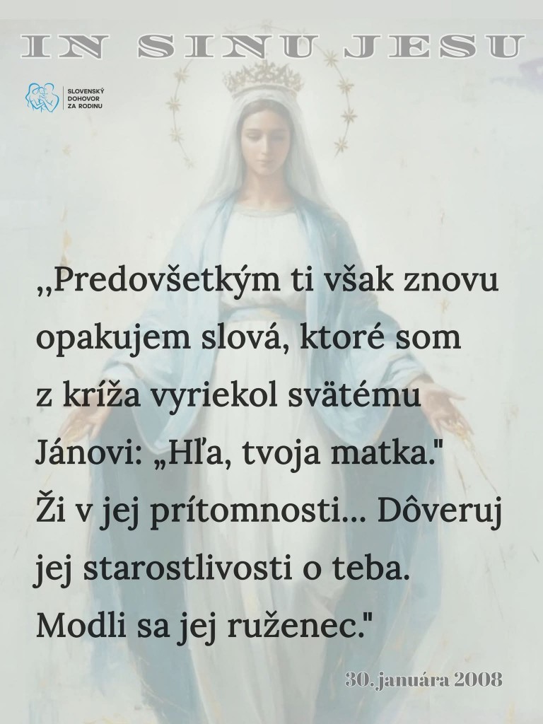 Svätá Mária je, ako ju vzýva Cirkev - Kráľovnou pokoja.