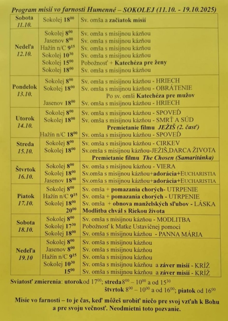 Dvadsiata deviata nedeľa v cezročnom období (Misijná nedeľa) |